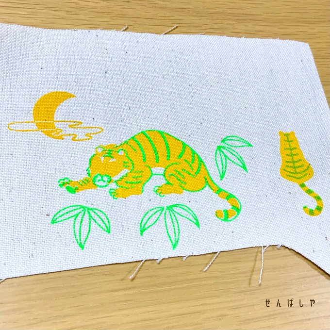 2 44 試し刷りがメッチャ可愛い🐯 家にあったスカジャンを参考に ポップなトラになりました😆 ブックカバーと手帳カバー作ります🙌 #イラスト #シルクスクリーン 21/11/25 21:26