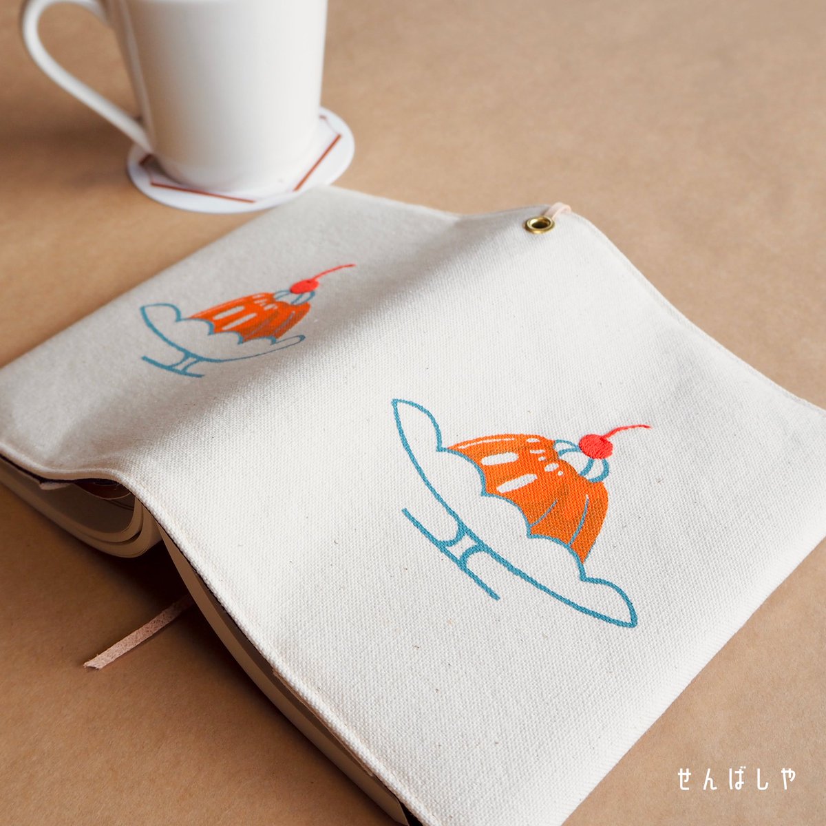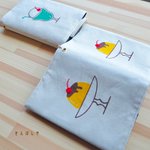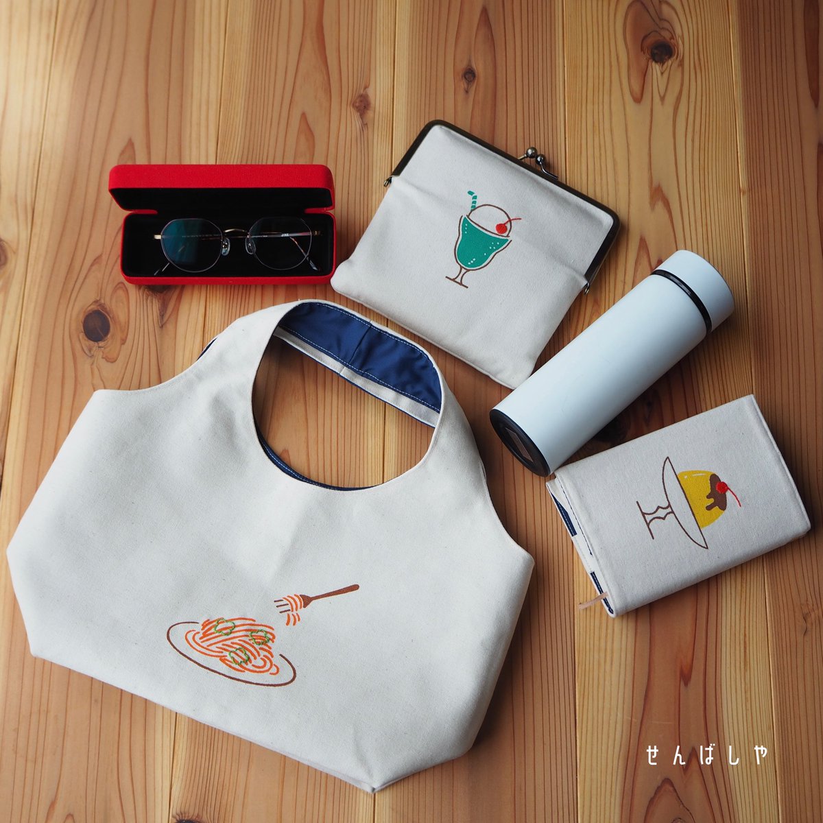 #2021年年末に今年まだ出会ってない素敵な作品に出会うタグ ゆるいイラストと 刺繍を組み合わせたりして ブックカバーや、ポーチを作ってます 🍮🥞