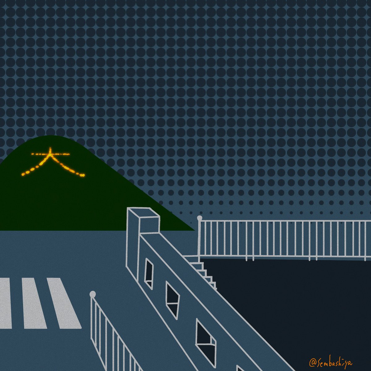 今日は久しぶりに大文字が見れるそうです。 #イラスト