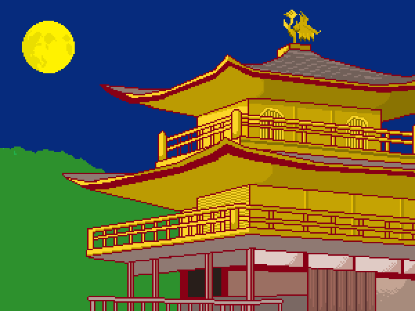 マウスで描いた金閣寺、ひとまず完成です! #金閣寺 #ドット絵 #ピクセルアート #pixelart
