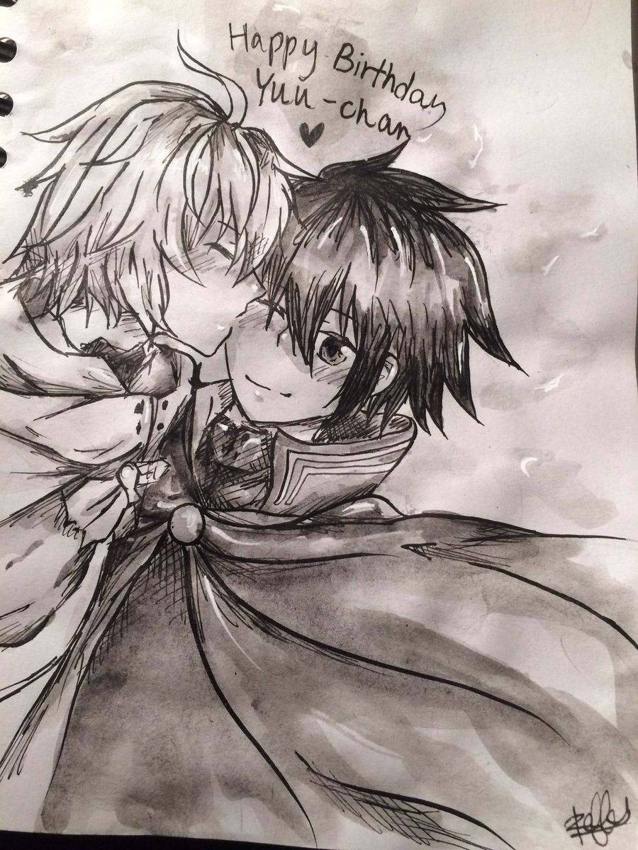 • DAY 16 Happy birthday Yuu chan !! J'adore tellement dessiner Mikayuu ;;;; (Sorry Kirishima) #inktober #inktober 2017 #百夜優一郎生誕祭2017