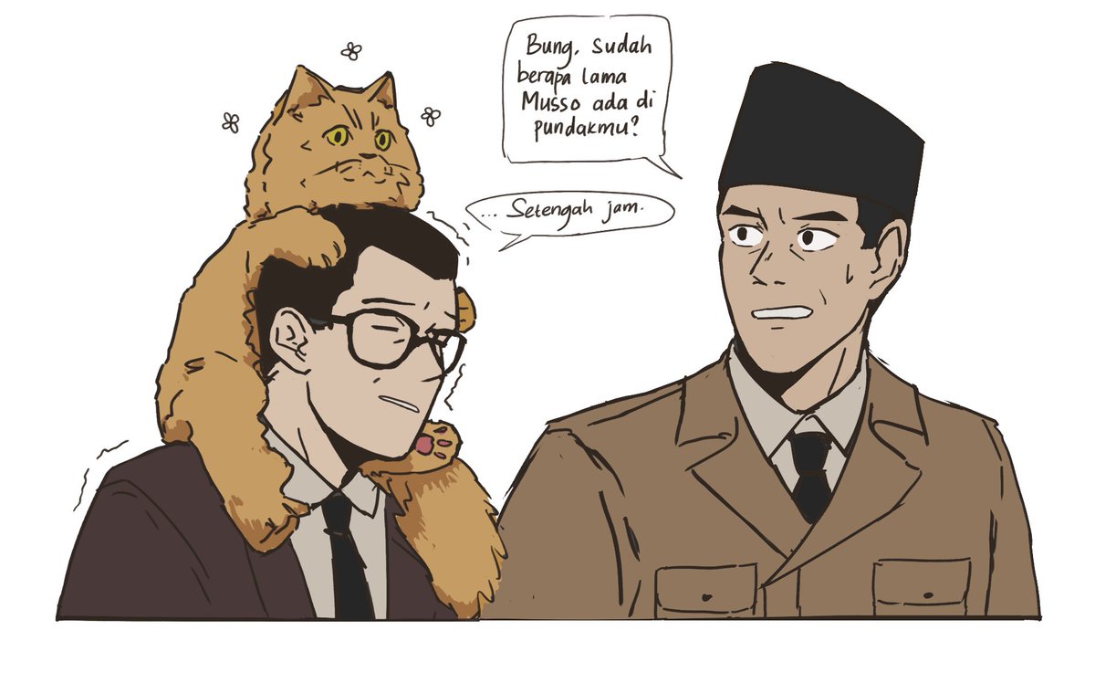 Day 8-9 - Heya I'm back with 3 drawings Pict 1: Founding fathers ft. Dirga from #hwsindonesia Pict 2: Konteks pada masa perpindahan RIS ke Demokrasi Terpimpin Pict 3: Bonus + for fun :D Hope u guys like it :3
