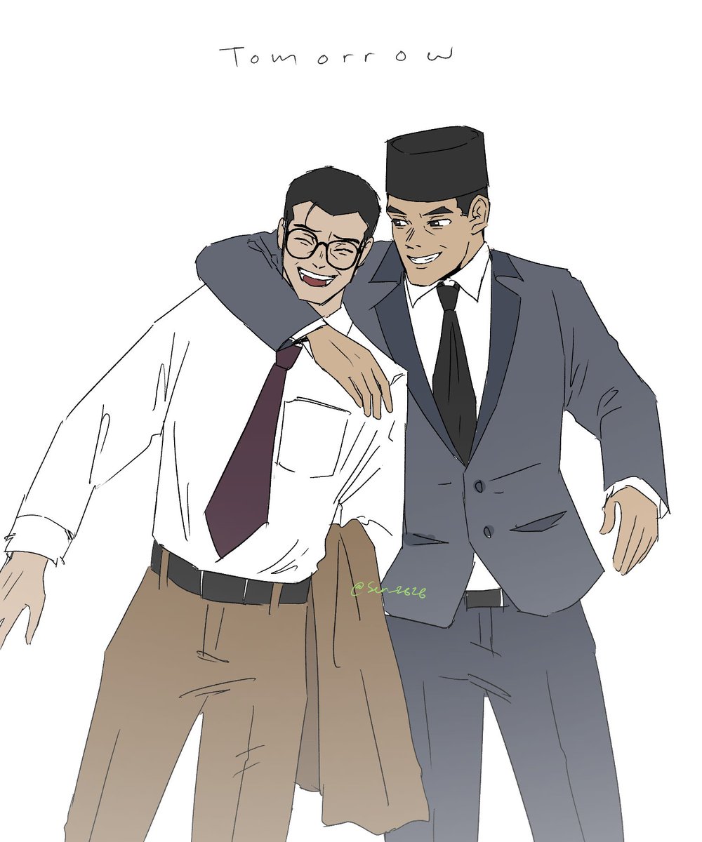 Day 17 - Selamat ulang tahun 🇮🇩 Dirgahayu ke-78 bersama Soekarno, Hatta, Sjahrir, dan fanart dari tokoh manga yang mewakilkan Indonesia. #hwsindonesia #hetalia #ネシアさん生誕祭2023