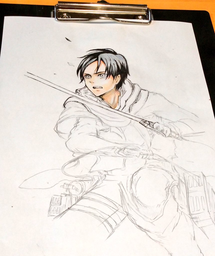 模写の経過。。2日でちょっとずつ! めちゃくちゃ楽しいです✨ 今日休みなので完成目指して描いていきます!! 色塗り苦手でしたが、 最近好きになってきました*॰ॱ✍ #エレン・イェーガー #進撃の巨人 #模写 #shingeki #エレン #イラスト #色鉛筆 #絵描きさんと繋がりたい