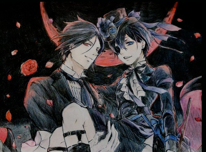 シエル × セバスチャン 完成しました!! 楽しかったです😆 初めて背景も全部描いてみましたが どうでしょうか?(_ _)💦 #シエル・ファントムハイヴ #セバスチャン・ミカエリス #黒執事 #模写 #色鉛筆 #イラスト #絵描きさんと繋がりたい