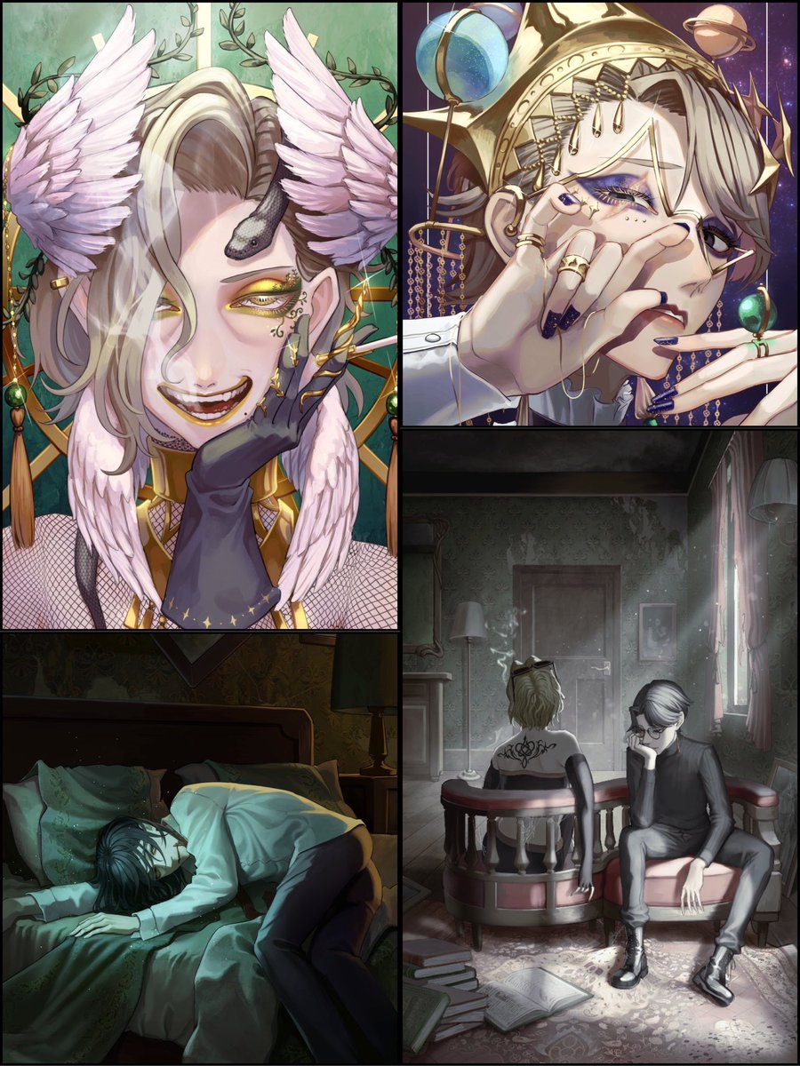 19 73 #2023年自分が選ぶ今年上半期の4枚 最近またちょっとしっかりめの絵が描けてないので、3枚みたいな薄暗い一枚絵も右上みたいなうちの子に装飾盛る絵ももっと描きたい 23/06/23 21:49