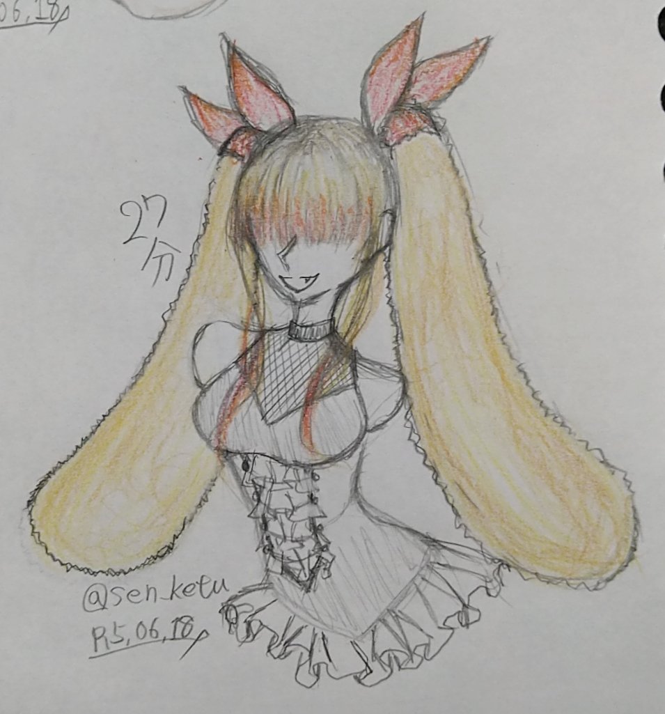 代理キャラ描かせろの犠牲者5人目兎さん( 'ω') アナログでラフ描いたのをそのまま線画抽出したので粗いです|'ヮ') めちゃくちゃ落描きクオリティだけど楽しく描けましたッッ 有難う御座いましたッ twitter.com/sen_ketu/statu…