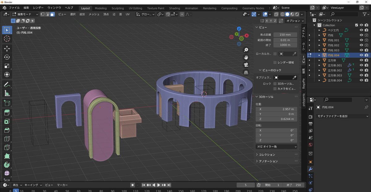 blender初心者100日チャレンジ! 【 31日目 】 セットアップ系で間3日失った~! 制作再開 背景モデリング手前二つようやく完成 はやくSubstanceにいきたい 別途でやろっかな #blender #100日チャレンジ #blender初心者 #b3d