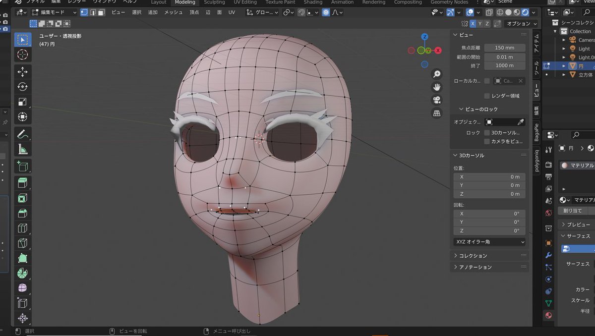 blender初心者100日チャレンジ! 【 26日目 】 突然何も見ずに顔のモデリングチクチク ポリゴンの流れだけわかればなんとかなりそう #blender #100日チャレンジ #blender初心者 #b3d