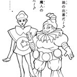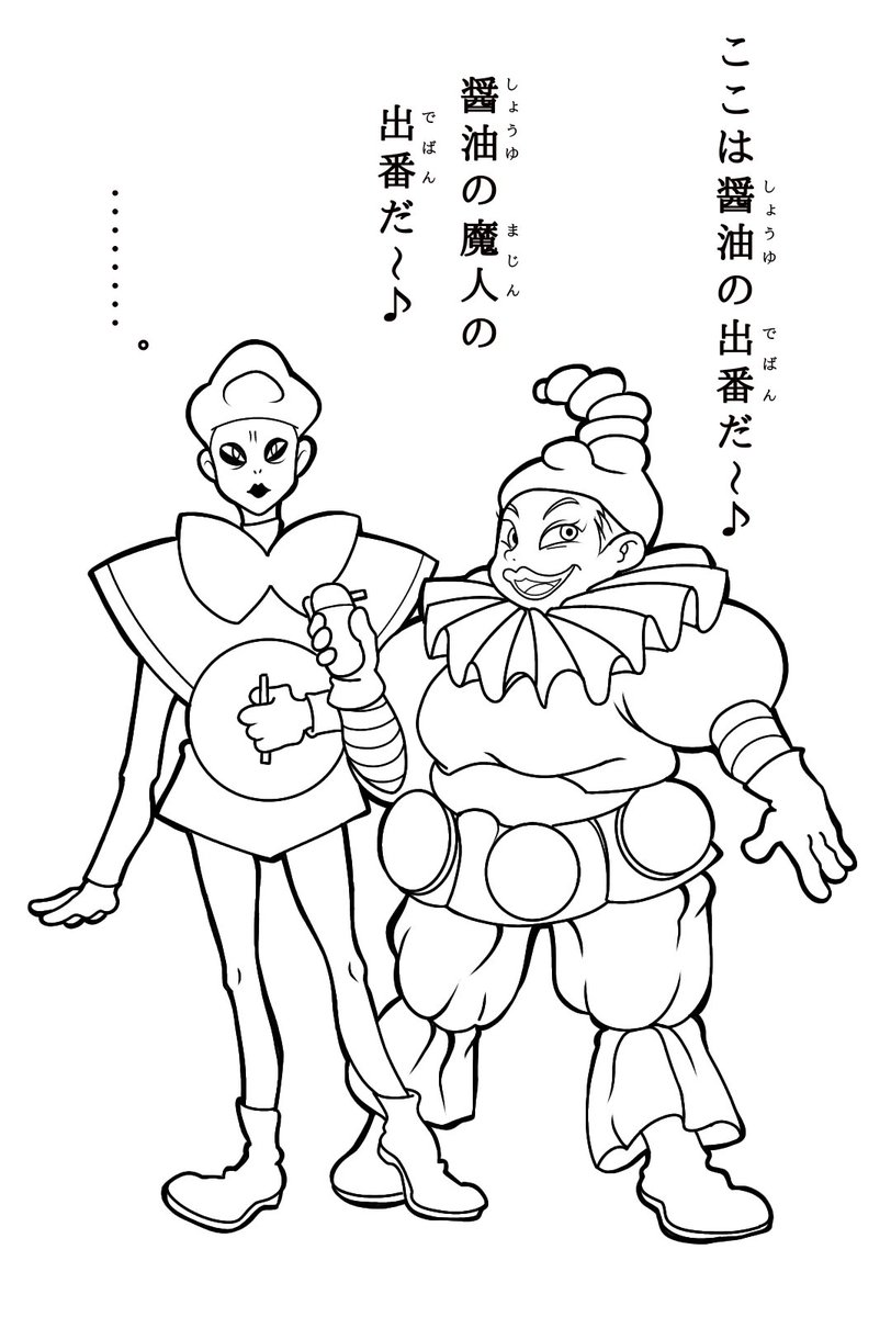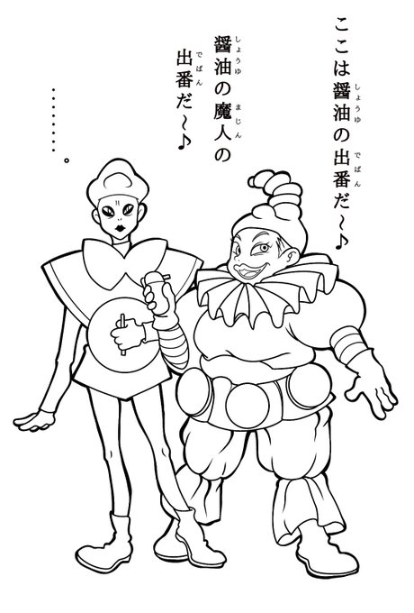頭から離れないので塗り絵にしました。塩の魔人と醤油の魔人。