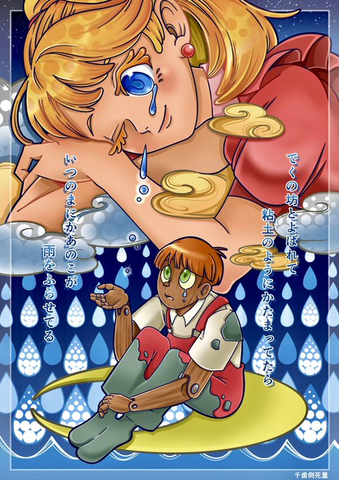 でくの坊とよばれて粘土のようにかたまってたら いつのまにかあのこが雨をふらせてる #たま生誕祭2022曲リレー #虚言イラスト倶楽部