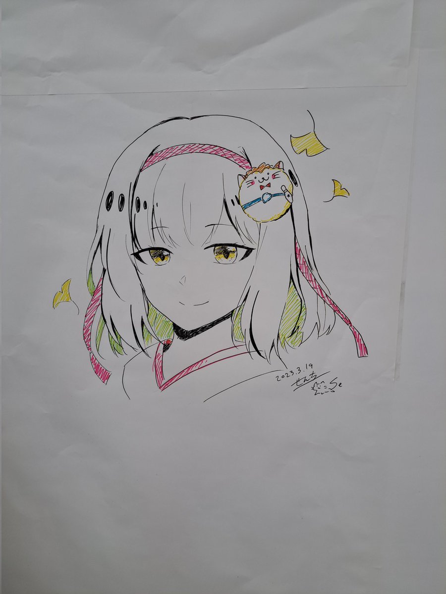 #稲沢イラストアート展 ベニサザンカとイチョウ、グービーくんも一緒に描いてみました😆 明日持ってきます🚙💨 最終日は最後までいられませんが、ボーリング大会も沢山の方々が参加されるとか…🎳 皆さんにお会いできること楽しみにしてます💕