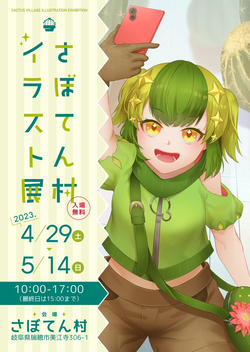 #さぼてん村イラスト展 今日からスタートです🎉 沢山の種類のさぼてん🌵とイラストを是非見に来てくださいね😆 明日30日、雨☔模様ですが在廊予定です。 さぼてん村は雨でもゆっくり見学できますよ~🌵🌵