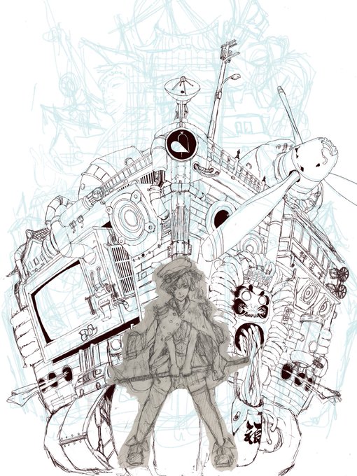 下書き 製作中 黒船来航を題材にしてます。 #マリンのお宝