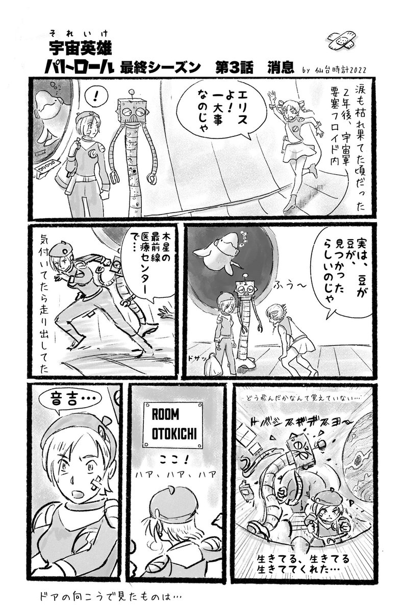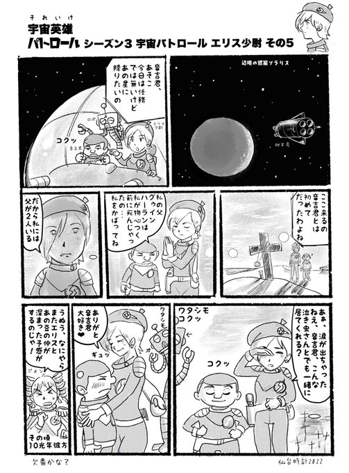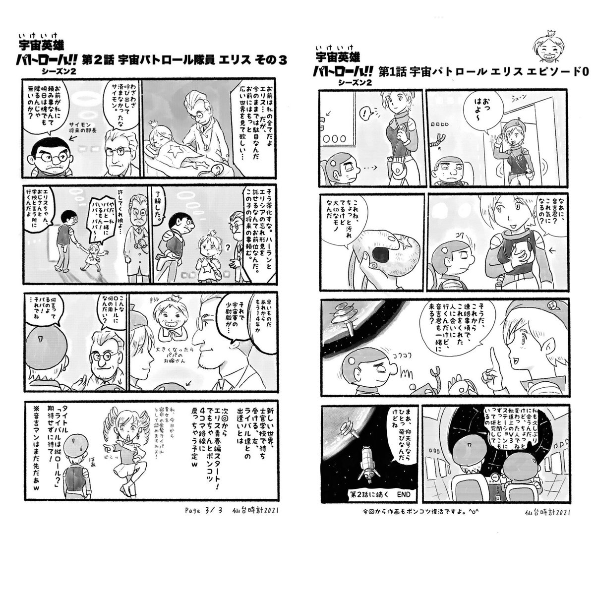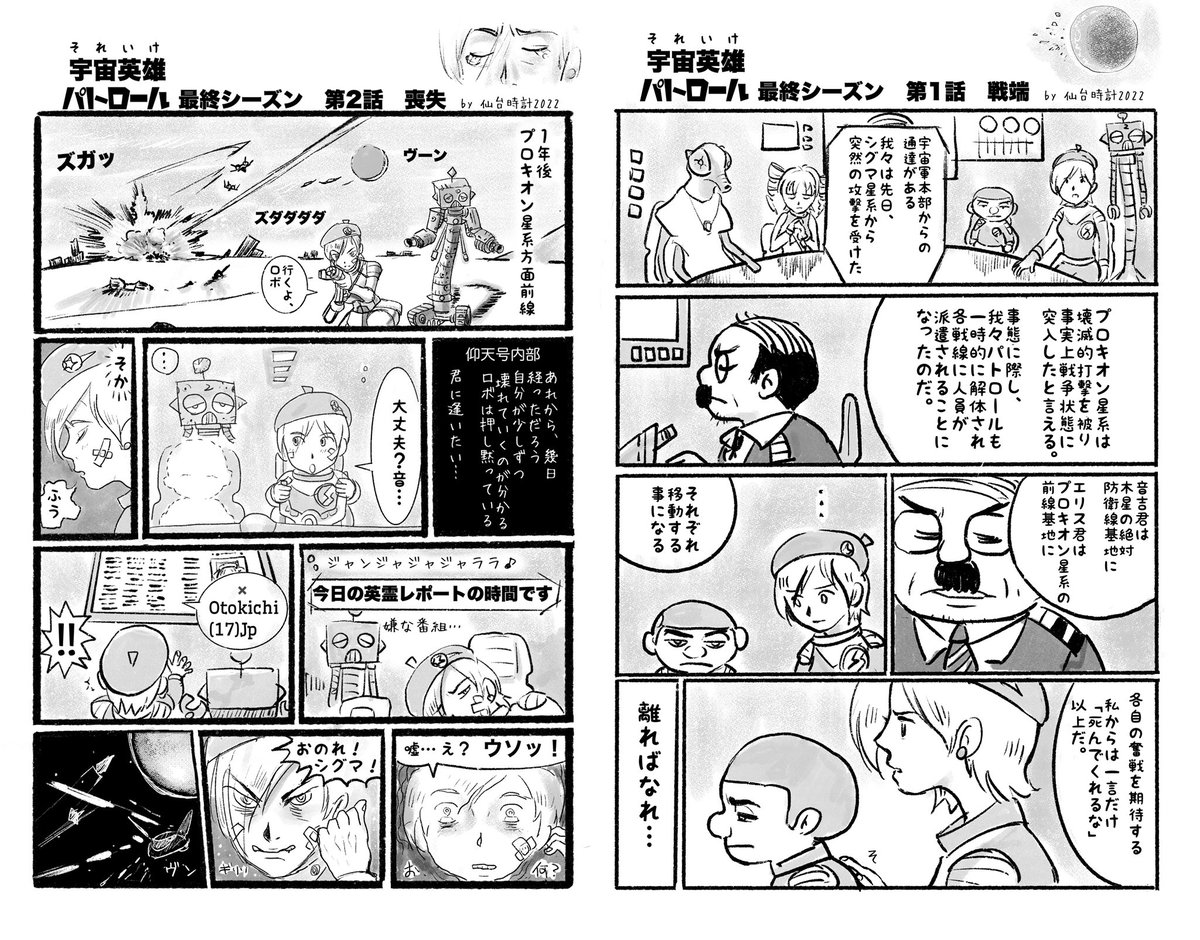 落書きマン投稿: 昨年大晦日突然描き始めた、私の初めての漫画宇宙英雄パトロール 正篇は一応ここで終わりになります。 わずかでもご興味のある方は、固定リンクの全話用 リンクでPDFを読んでみてください。 それでは、自分自身と、一緒に走ってくれた2人の主人公に 感謝を d.kuku.lu/3736a92e6