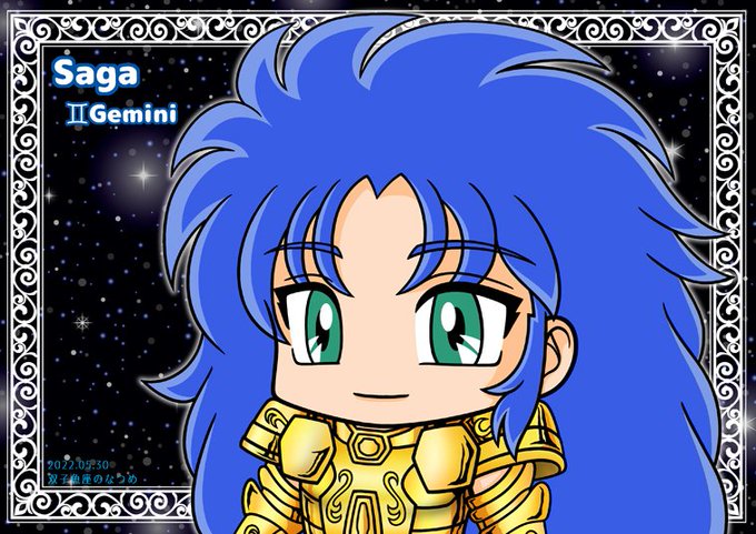 今年も何とか間に合った。 毎度髪型描くの難しくて苦戦するけど今回はちょっと上手く描けた気がする。 #双子座のサガ・カノン生誕祭2023