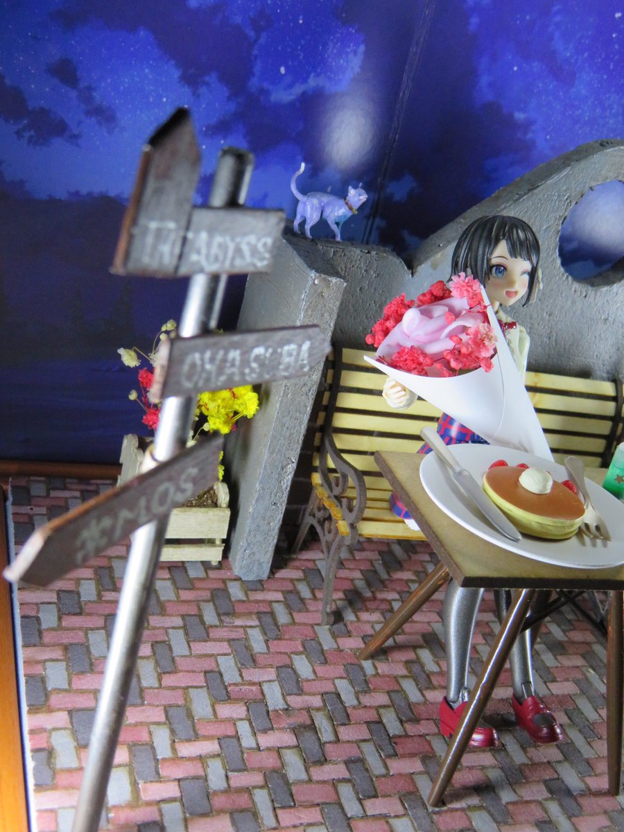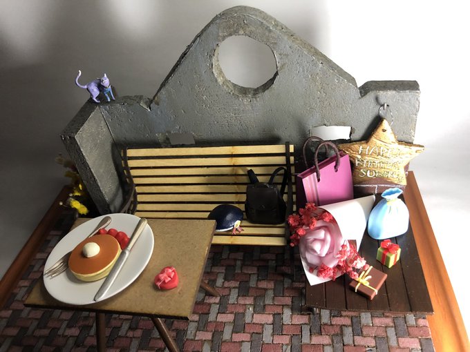 そんな感じで、名づけて『大空スバル生誕祭会場』です♪ 昨日作成した1/12スバルちゃんに合わせて製作しました。 ベンチ、猫、プレゼントとパンケーキ以外は自作しました。 ジオラマ作りは好きですが、このサイズは余り経験がなかったので結構四苦八苦でしたね(^^;; #プロテインザスバル
