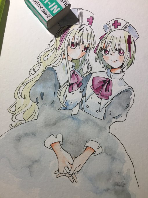 1 34 過去絵 双子の看護婦さん #絵描きさんとつながりたい #令和最初の絵描きさんと繋がりたい 19/06/03 21:51