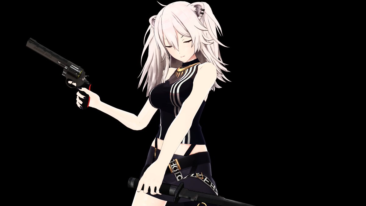 #ししらーと 「動いたら撃ち抜く」 本当はスナイパーライフルを持たせたかった……… 提供元 モデル 獅白ぼたん ホロライブ公式様 武器(エボニー&アイボリー) アカククリ様