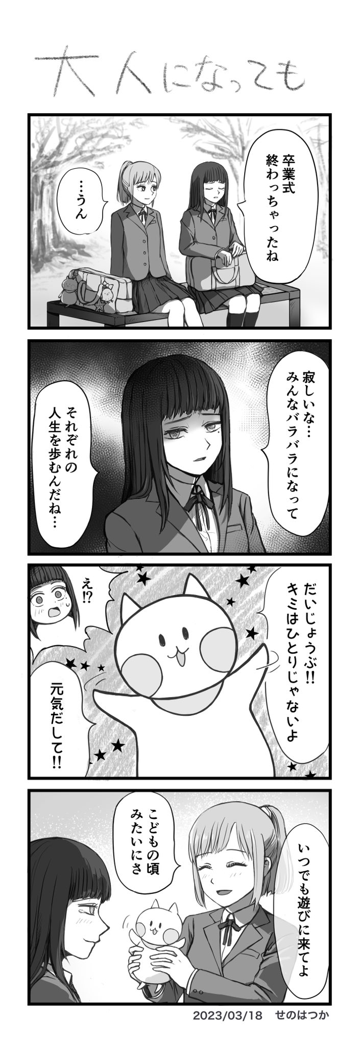 2 8 #キュンバト お題:卒業 こういうの初めて描きました 恥ずかしさで自分がキュンキュンしました #4コマ #4コマ漫画 #漫画が読めるハッシュタグ 23/03/18 12:59