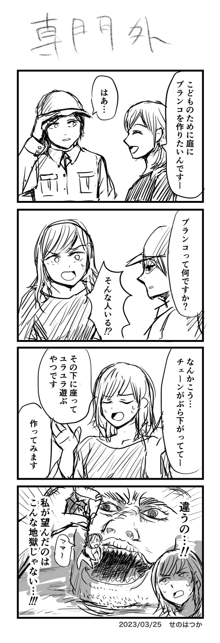5 47 #ヨンバト お題:ホラー お題が難しくて サスペンスで濁しました…! #4コマ #4コマ漫画 #漫画が読めるハッシュタグ 23/08/18 18:10
