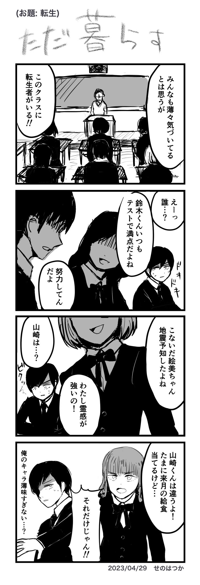 4 20 #1h4d お題:転生 描く時間がいつもより無くてプーン #4コマ #4コマ漫画 #4コマR #漫画が読めるハッシュタグ 23/04/29 23:24
