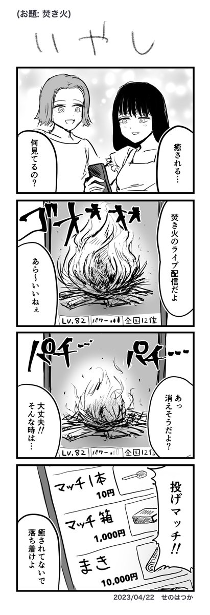 4 20 #1h4d お題:焚き火 #4コマ #4コマ漫画 #4コマR #漫画が読めるハッシュタグ 23/04/22 22:37