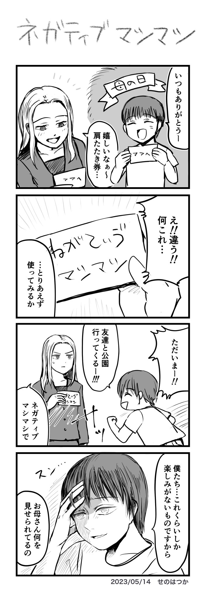 【四コマ】ネガティブマシマシ 母の日をテーマに描きましたが 感謝からかけ離れた内容になってしまいました フィクションです #4コマ #4コマ漫画 #漫画が読めるハッシュタグ #創作漫画 #母の日