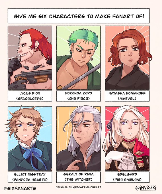 Finally! My take on the #SixFanarts challenge! :) - #Spacelords #OnePiece #Marvel #PandoraHearts #TheWitcher #FireEmblem