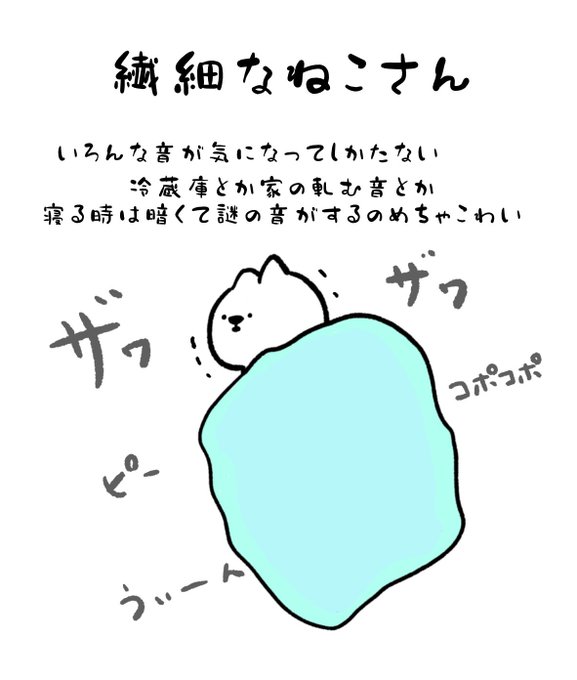 無音がどれだけ難しいか痛感 たとえ音楽を流してもこの手の音にはすぐ気付く #繊細さん #HSP #イラスト #ねこ #cat #日常