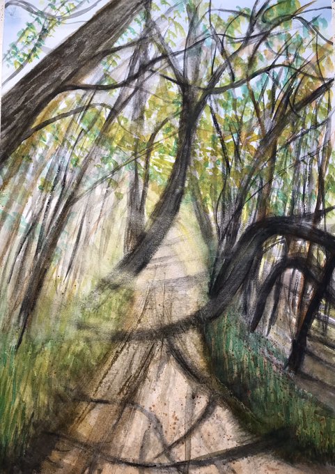« Danes’ Dyke Woods » 2022 First painting session in a long time. Loosening up, paying no or little attention to process or detail. Not sure where this is going. #watercolor #aquarelle #watercolorpainting #watercolorlandscape #landscapepainting #danesdyke #flamborough #clmooc