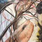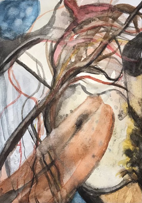 «Fault » 2022 Rather than rip up a failed painting, I changed mindset and continued in a different direction, letting it take me to an unpredictable place. #watercolorpainting #watercolorandgraphite #abstract #clmooc