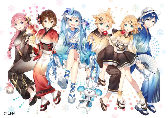 雪ミクスカイタウンのグッズ用イラストを担当させて頂きました!6人の浴衣姿描くのとても楽しかったです。🎇🏮👘詳細はこちら▶blog.piapro.net/2021/08/c21080… #初音ミク #雪ミク