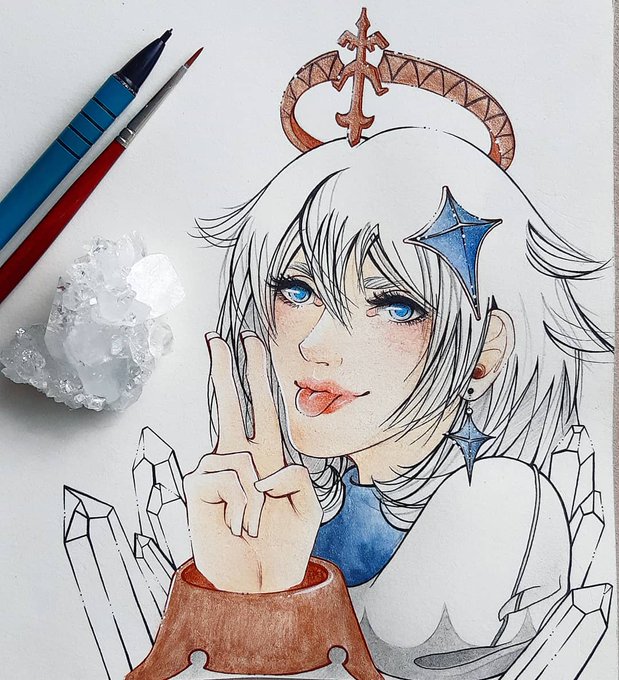 Finished my adult #Paimon artwork today and I gotta say, the metallic paint suits her really well 👌🏻💙🌟 #GenshinImapct #GenshinImpactArt #GenshinImpactFanart