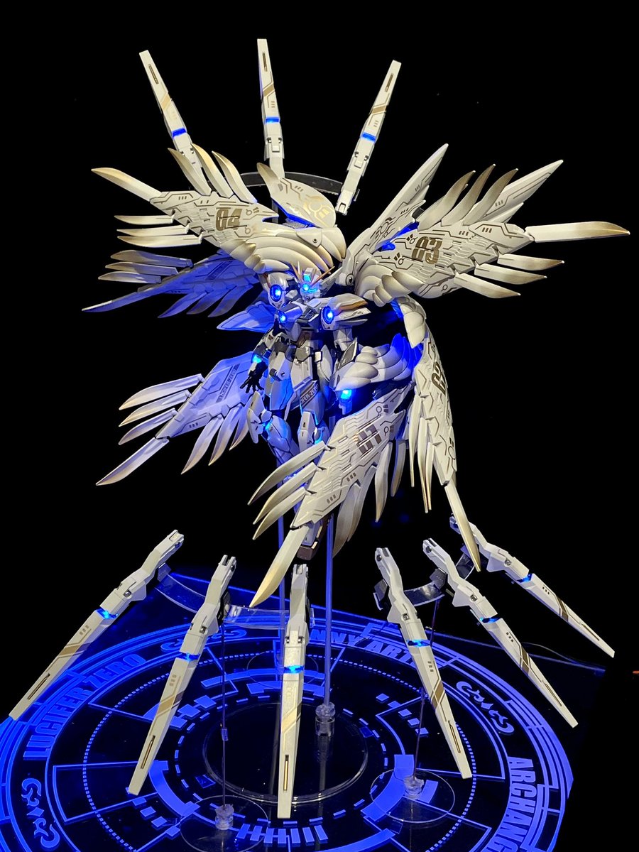 #メガミ・エアリアル 全てのコンポーネントを組み合わせ全電飾点灯。4ヶ月の制作期間を経てメガミ・エアリアル完成です。やり残したことはもうありません!50cm四方の空間も使い切りました! 残り15日間、写真撮影に全振りしますのでお楽しみに😆(↓コメントに設定