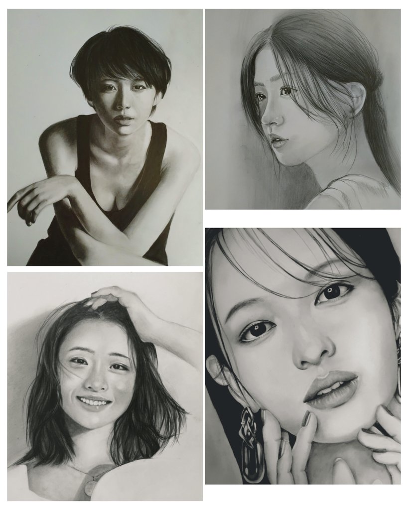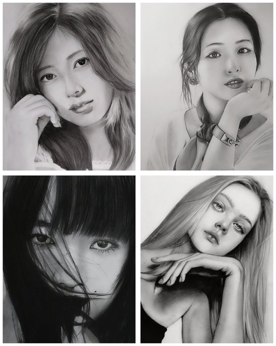 2 14 #鉛筆画 #pencildrawing #人物画 #石原さとみ 12月のさとみちゃん❤ 4カット画描いてみました。 ※A4size ケント紙 ※7H~8B 鉛筆 22/12/23 08:23