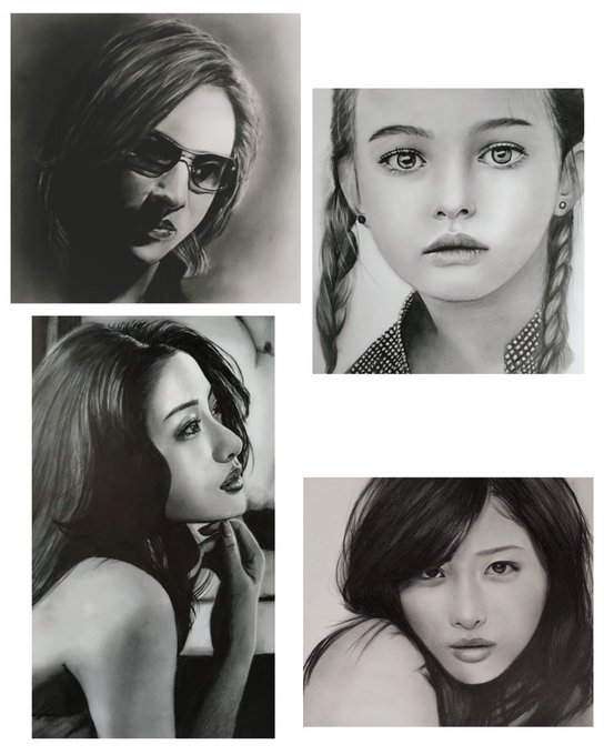 #鉛筆画 #pencildrawing #人物画 #石原さとみ 12月のさとみちゃん❤ 4カット画描いてみました。 ※A4size ケント紙 ※7H~8B 鉛筆