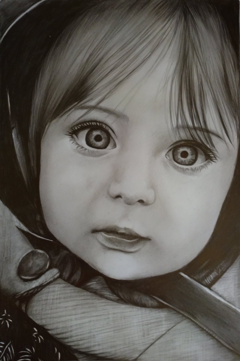 #鉛筆画 #pencildrawing とっても可愛い子💕 描いてみました。 完成(՞*´艸`*՞)アハ