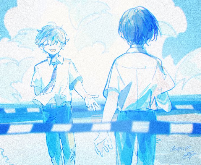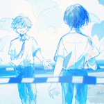 102 471 【お知らせ】 2022年7月23日発行予定の北スバ アンソロジーの装丁デザイン、及び表紙イラストを担当しました!💙🧡 『インターステラーランデヴー』という文字を目にした瞬間、風船が飛ぶ爽やかな青空の下で楽しそうに手を繋いで前へと進む彼らの姿が思い浮かび、真っ直ぐに描かせていただきました。→ 22/06/06 21:47