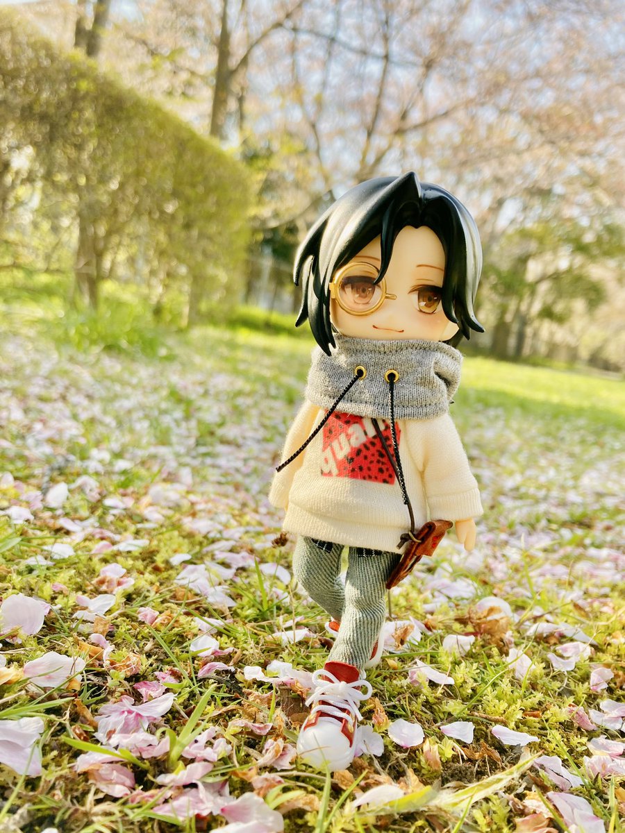 久しぶりのお散歩🌸桜はほぼほぼ葉桜になってたけど、桜の絨毯が綺麗だった~🌸🌸🌸 #にじさんじドール部