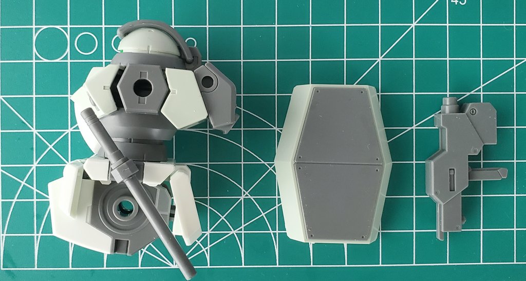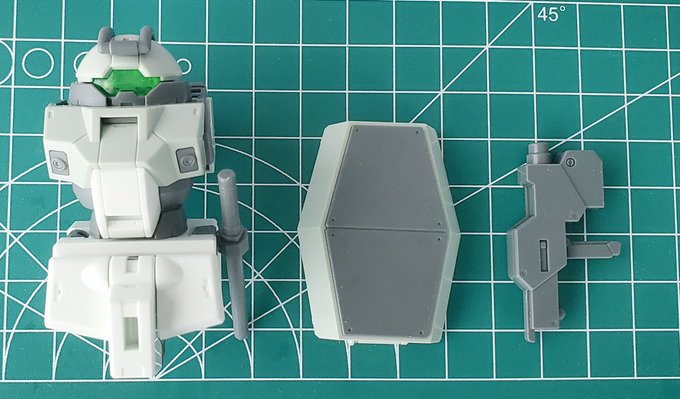 1 17 弊社展示サンプル組立て完了。 HG 1/144 ガンキャノン (ククルス・ドアンの島) 肩部合わせ目を接着剤で埋めて バルカン部を部分塗装🖌️ #ガンプラ 23/05/22 14:13