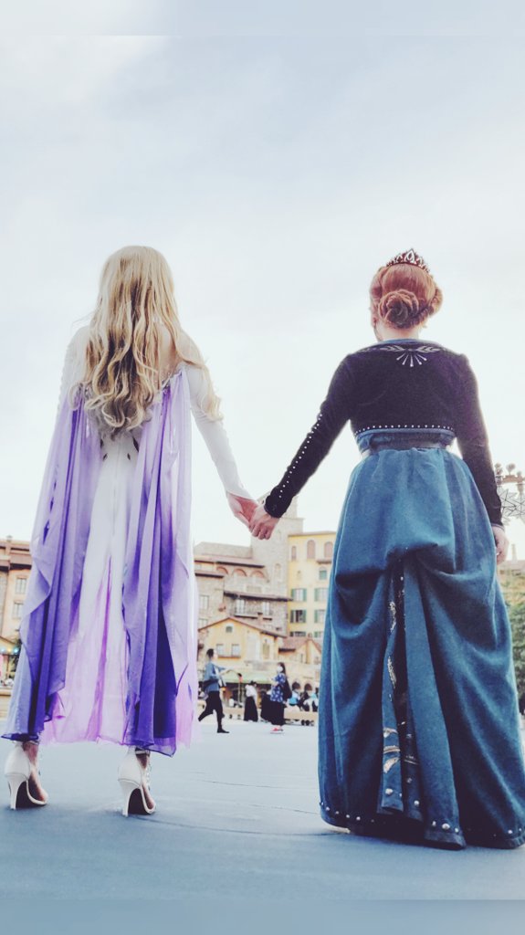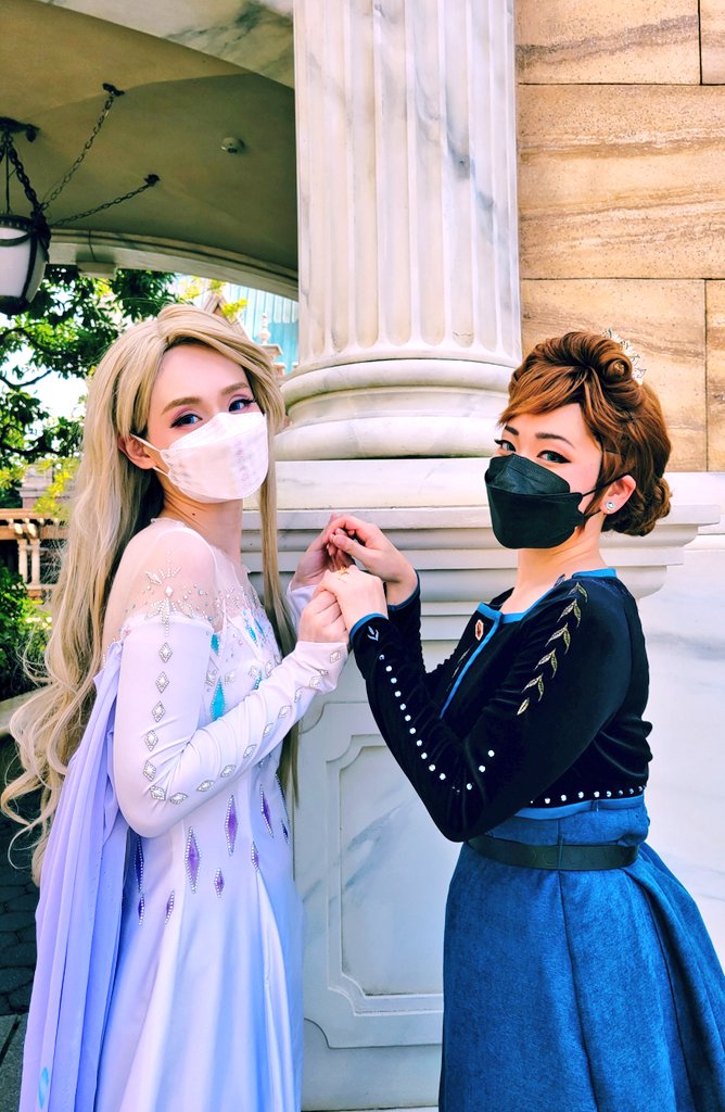 本日TDSにてクイーンルックエルサ&アナにて仮装インパしてきたので備忘録!日中かなり暑かったけど、お声掛け&お写真撮って頂いたり、キャストの方にも沢山遊んで頂いて楽しかったです♪衣装とサンダル自作で頑張って良かった! #ディズニー仮装2022 #Dハロ仮装2022 #Dハロ仮装者さんと繋がりたい