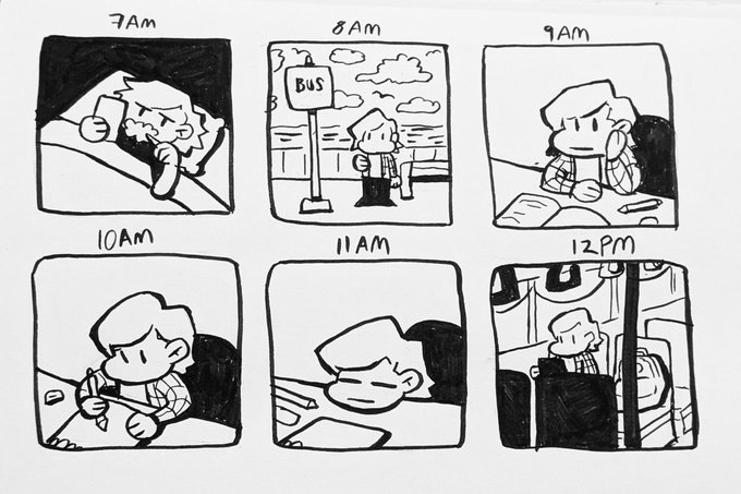 0 2 First time participating in hourly comic day! Just an average day attending in person and online college classes 🧵 #HourlyComicDay2023 23/02/03 05:16