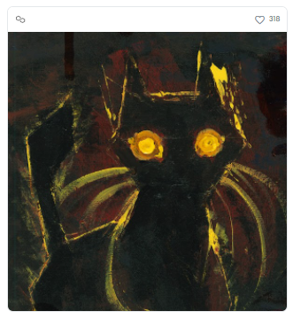 7 84 ファンアートってやったことないのですが、きゅーさん @QKawabata の「八方睨みの猫」を描いても良いとのことだったので描いてみたら「八方虚ろ目の猫」になってしまいました🐈💦 ファンアートってどの程度寄せて描けばいいんだろうか… #ファンアート #NFT #NFTs #NFTCommumity 22/03/23 20:56