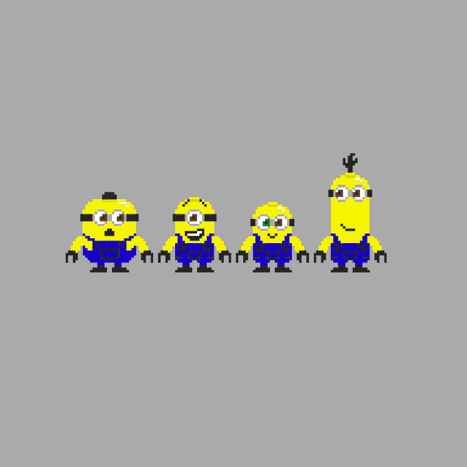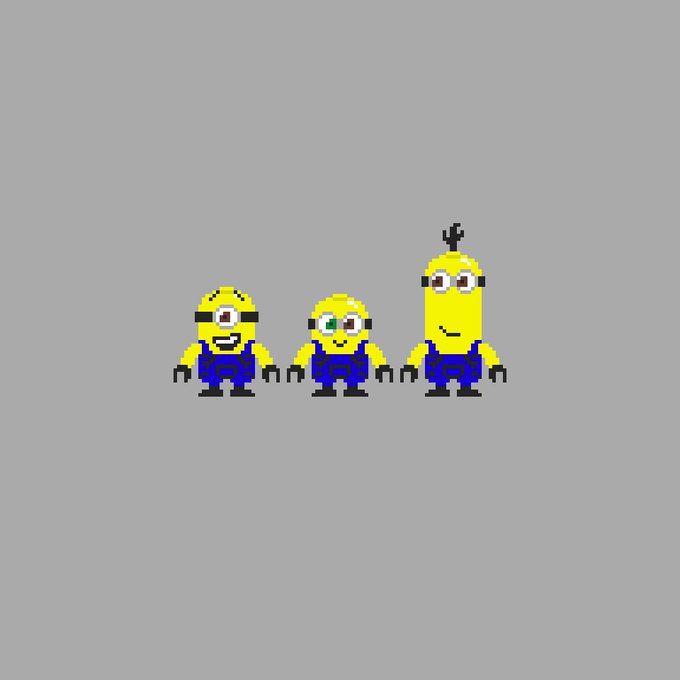 Minifig otto, stuart, bob and kevin #pixelart #Minions #LEGO #ドット絵 #毎日ドット絵 #絵描きさんと繋がりたい