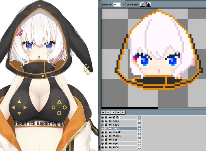 wip... 土日の間にアニメーションまでつけたい気持ち うまくちびキャラにできるといいなあ・・・ #pixelart #ドット絵 #バツマルあいす