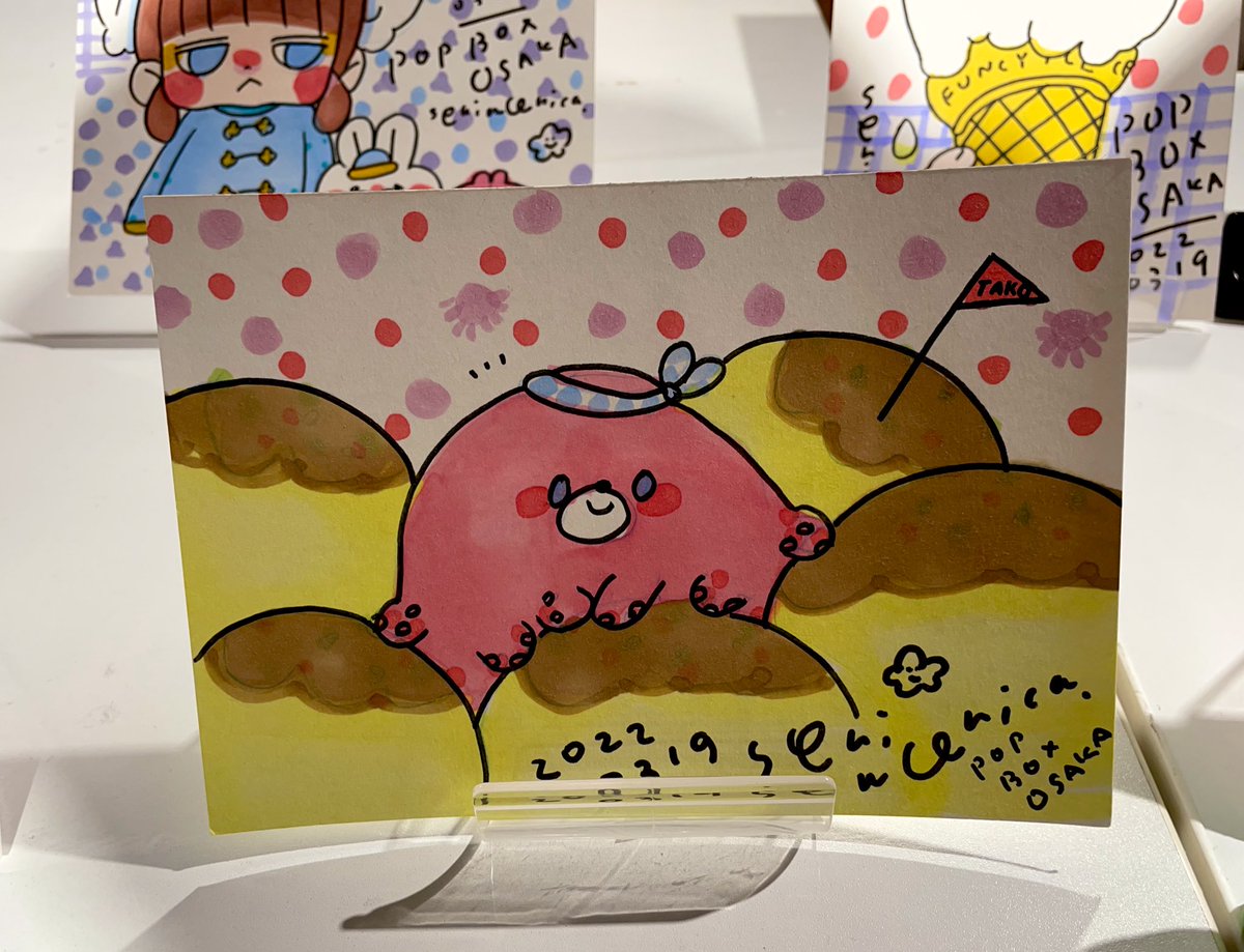 ライブペイントはじまるよの告知もままならず終わりました!🙏💦 お立ち寄りいただき、本当にありがとうございます🙏😭ライブペイントは完売いたしました🙇♂️ また明日がんばって描きますー✨🥰 (今回は大阪なのでたこのやきのすけ描いてみました!🐙) twitter.com/loft_umeda/sta…