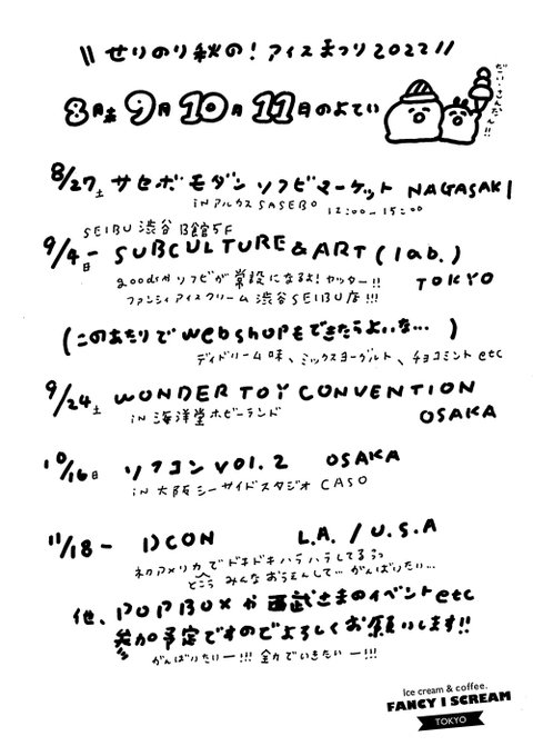 9月4日(日)から西武渋谷店B館5階の【SUBCULTURE&ART(lab.)】に 常設で作品を置いていただくことになりました✨✨✨🙏 ファンシィアイスクリーム🍨西武渋谷店として可愛がっていただけたらうれしいです✨✨✨ 照紗ちゃんひなたかほりちゃんとのコラボ商品もあります💕🎀 sogo-seibu.jp/shibuya/topics…