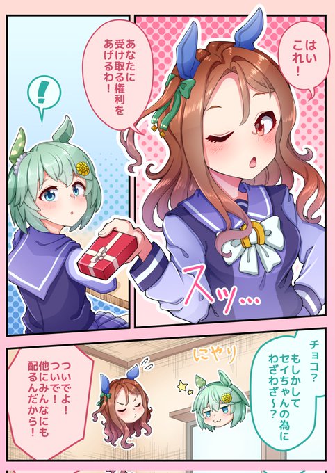 キングとウンスのバレンタイン 遅刻だけど許してくれ #キングヘイロー #セイウンスカイ #ウマ娘