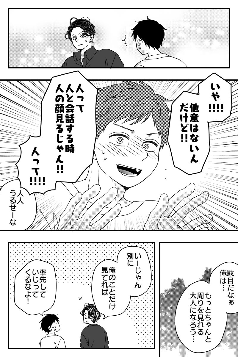 ダウナー後輩とネガティブ応援団長先輩④ 多分1コマ目を一番頑張りました ※①②③はツリー(↓)に下げておきます #創作BL #漫画が読めるハッシュタグ #ダウナー後輩とネガティブ応援団長先輩